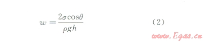重力本質(zhì)上是由地心萬有引力產(chǎn)生的,由于頁巖儲層較厚,壓裂液返排過程中毛細(xì)管力與重力同時(shí)以阻力的性質(zhì)發(fā)生作用。假設(shè)裂縫寬度為w,高度為h,壓裂液與頁巖的表面張力為s,接觸角為q,壓裂液的密度為r,存在一個(gè)毛細(xì)管壓力與重力接近的臨界寬度w,即