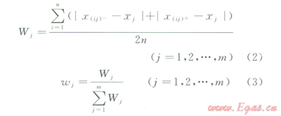 最后,對(duì)各指標(biāo)的變異系數(shù)歸一化處理,計(jì)算指標(biāo)權(quán)重(wj):