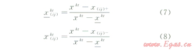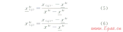 x(ij)+、x(ij)-分別為7個(gè)指標(biāo)區(qū)間變化范圍的最大、最小值;