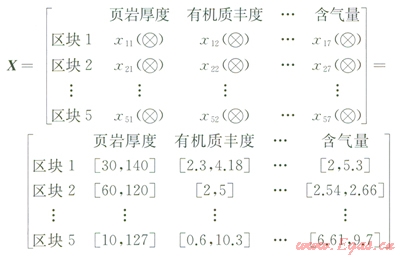我國(guó)頁(yè)巖氣估計(jì)可采資源量為26×1012m3,接近常規(guī)天然氣資源儲(chǔ)量3[1-2]。由于其獨(dú)特的成藏條件和構(gòu)造演化歷史,地質(zhì)參數(shù)的測(cè)定難以精確量化,具有不確定性和復(fù)雜性的特征。為優(yōu)選最佳區(qū)塊進(jìn)行勘探開發(fā),針對(duì)頁(yè)巖氣區(qū)塊這種多因素、評(píng)價(jià)指標(biāo)為區(qū)間數(shù)的地質(zhì)參數(shù)特征系統(tǒng)進(jìn)行優(yōu)選排序是頁(yè)巖氣勘探開發(fā)的關(guān)鍵技術(shù)。