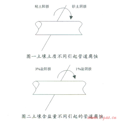 土壤腐蝕是油氣長輸管線的管外腐蝕的主要來源。土壤對管線的外部腐蝕,既有化學(xué)腐蝕,又有電化學(xué)腐蝕?;瘜W(xué)腐蝕主要是與土壤中所含的有機(jī)質(zhì),各種鹽類對金屬的腐蝕性有關(guān)。電化學(xué)腐蝕是因為土壤是一種導(dǎo)電介質(zhì),因而含水的土壤具有電解溶液的特性,從而在不均勻的土壤中構(gòu)成原生電池,而產(chǎn)生電化學(xué)腐蝕。