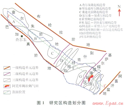 別什旨特坳陷東南部為基薩爾褶皺隆起區(qū),是阿姆河盆地的邊緣造山帶,與阿富汗—塔吉克盆地相接,呈復式背斜和復式向斜的構造格局。隆起區(qū)具有正地貌特征,其山系海拔介于600l000m,出露古生代基底,隆起區(qū)向盆地內部傾沒部位則與負向地貌一致,地表出露的地層較新。基薩爾隆起區(qū)可以進一步分為3個逆掩斷裂背斜帶,即阿克庫姆拉姆高爾達克構造帶、加拉恰加特構造帶、庫基坦格構造帶。