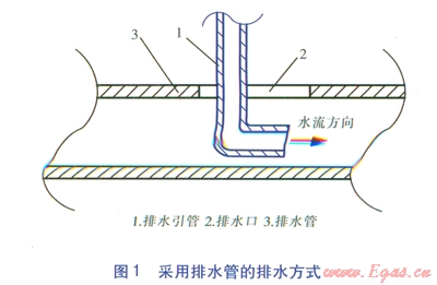 在原來設計需開挖排水溝的位置,敷設排水管代替排水溝。在對應排水點位置的排水管上開設排水口,用排水引管將排水引入排水口(見圖l)。排水口應大小合適,不能太小,以便觀測排水引管排出水的流量、顏色。排水引管末端應采用彎管形式(見圖l),以便引導帶壓熱水按指定方向排放,避免熱水濺出燙人。這種改進措施不僅施工方便,還杜絕了排水溝向電纜溝的滲流現(xiàn)象,更杜絕了敞開式排水溝引起的站內(nèi)空氣相對濕度過大問題。