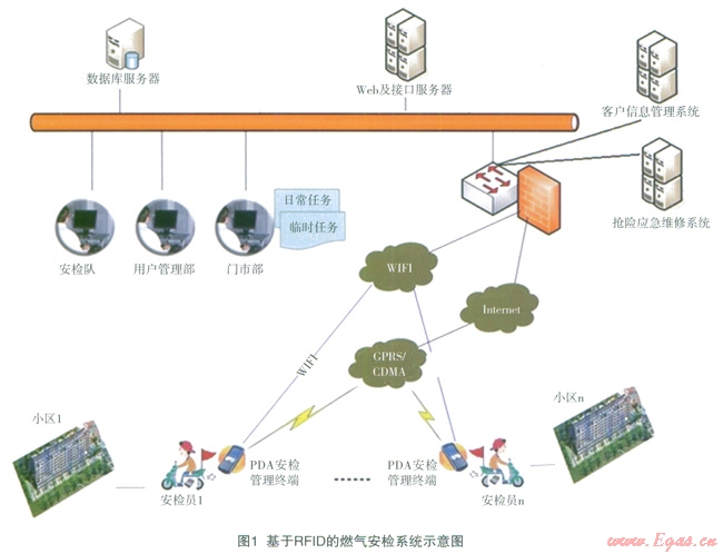 通過采用RFID技術并結合PDA安檢管理終端技術,可以確保安檢人員入戶安檢、避免漏檢,實現對燃氣安檢過程的精細化管理。通過使用無線通信技術,安檢結果能夠及時傳送到燃氣公司,避免手工重復錄入安檢結果的繁瑣及錯誤。通過與工單管理系統的結合,可確保隱患能夠得到燃氣公司搶險維修部門及時處理。