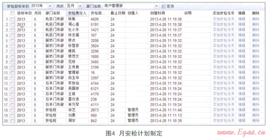 (2)計劃管理:實現燃氣公司年度安檢計劃,安檢隊月度安檢計劃和安檢人員月度安檢計劃的管理。