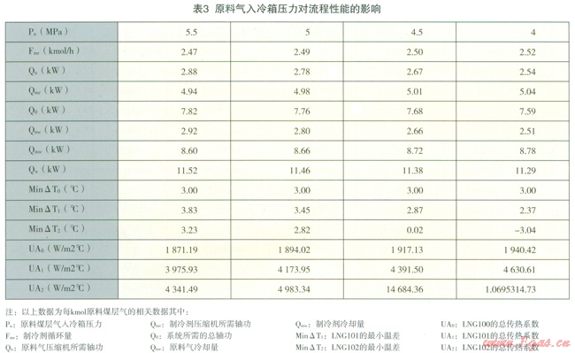 摘 要:分析了原料氣進冷箱壓力對制冷劑組份、流量、壓縮機功耗、冷卻水的冷卻量的影響。計算結(jié)果表明,對于特定的冷箱,原料氣進冷箱的壓力對制冷劑的組分、流量及壓縮機功耗產(chǎn)生重要影響。