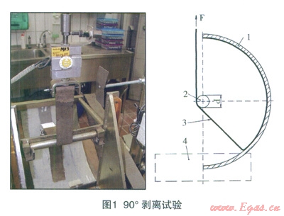 90°剝離試驗(yàn)系整個(gè)修復(fù)質(zhì)量檢驗(yàn)系統(tǒng)最重要的一環(huán),該試驗(yàn)得出的數(shù)據(jù)結(jié)果,可以直接反映從前期管道清理、翻轉(zhuǎn)內(nèi)襯到粘合劑固化整個(gè)翻轉(zhuǎn)內(nèi)襯修復(fù)施工過(guò)程中的質(zhì)量。因?yàn)閺膬?nèi)管壁噴砂清理的結(jié)果,翻轉(zhuǎn)內(nèi)襯過(guò)程中的壓力控制,到固化過(guò)程中的保壓情況和時(shí)間掌握,其結(jié)果都會(huì)影響修復(fù)后管道內(nèi)壁上內(nèi)襯材料的抗剝離強(qiáng)度。