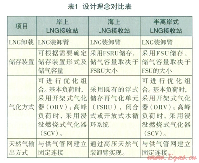 本文對(duì)岸上LNG接收站、海上LNG接收站(按具有雙側(cè)碼頭的浮式儲(chǔ)存再氣化單元)及半離岸式LNG接收站從設(shè)計(jì)理念、可靠性、操作方式、安全性、投資及建設(shè)周期方面進(jìn)行比較。