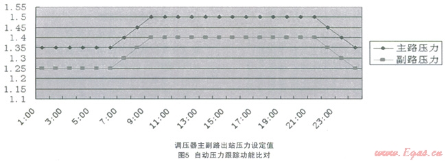 (3)自動壓力跟蹤功能減少了遠(yuǎn)程監(jiān)控人員的工作量,對中壓管網(wǎng)調(diào)峰有很大的意義,并優(yōu)化了設(shè)備的運(yùn)行工況。