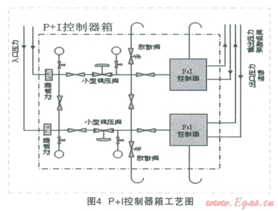 在整個系統(tǒng)中P+I控制器相當(dāng)于整個遙調(diào)系統(tǒng)的大腦。P+I控制器還附帶一些附屬設(shè)備,以安全、穩(wěn)定地完成控制,工藝圖見圖4。