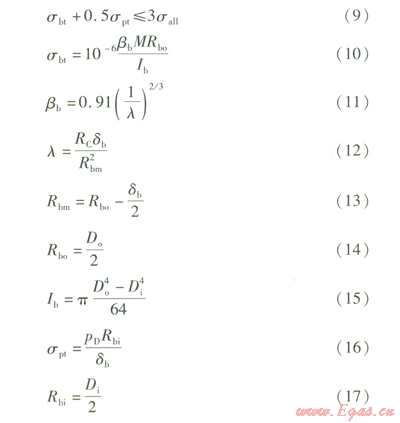 根據(jù)CJJ/T 8l—98《城鎮(zhèn)直埋供熱管道工程技術(shù)規(guī)程》,滿足內(nèi)壓要求的計(jì)算壁厚dC的計(jì)算式為: