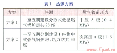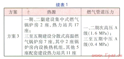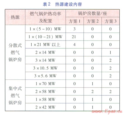 一般而言,熱源方案的確定是以“保障供熱安全,技術(shù)工藝合理,工程投資經(jīng)濟,環(huán)保效益突出”為原則,從區(qū)域總體規(guī)劃及大氣污染治理的總體要求出發(fā),從技術(shù)、經(jīng)濟、工程實施可行性等多角度進行比選。針對本工程的區(qū)域特點,在常規(guī)的比選條件的基礎上,結(jié)合總體規(guī)劃的分期開發(fā)要求,提出了3種熱源方案進行比選(見表l),3種方案均采用分期建設方式。