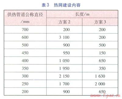 方案l3各分項工程建設內(nèi)容分別見表26。表3中的熱網(wǎng)指一級管網(wǎng),由于二級管網(wǎng)(包括分散式低溫燃氣鍋爐房至熱用戶的管網(wǎng))造價由用戶分攤,因此不計入熱網(wǎng)造價中。由表26可計算得出方案l3的工程造價分別為35237.74×104、43004.35×104、41047.11×104元。