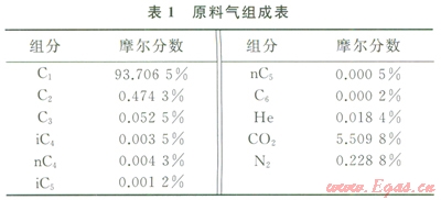 含飽和水的天然氣在冷卻過程中由于冷凝水的析出,會(huì)形成天然氣水合物,它是一種固態(tài)結(jié)晶體[3]。根據(jù)榆林氣田天然氣組成情況,采用專業(yè)軟件分析[4-5],計(jì)算壓力為6~20MPa時(shí)天然氣水合物形成溫度為14.5~22.3℃。榆林氣田天然氣處理廠脫油脫水過程中,原料氣在板翅換熱器中會(huì)被產(chǎn)品干氣預(yù)冷至-10℃左右[6-8],在丙烷蒸發(fā)器中被冷卻至-20℃左左右,在此條件下,系統(tǒng)中會(huì)有天然氣水合物生成。為防止天然氣水合物生成,在板翅換熱器和丙烷蒸發(fā)器前分別向天然氣中注入天然氣水合物抑制劑甲醇。從三相分離器分離出來的甲醇污水中甲醇含量為25%~50%,不能直接回注地層,需要通過精餾進(jìn)行甲醇回收處理。研究表明[9-10],對(duì)于榆林氣田甲醇含量為l%~3%的污水,每回收lt甲醇產(chǎn)品(塔底水中甲醇濃度為0.1%),僅蒸汽消耗量就為10.5~33t,對(duì)應(yīng)的蒸汽費(fèi)用為862~4000元,而粗甲醇產(chǎn)品的市場價(jià)格約為2000元/t,顯然是不經(jīng)濟(jì)的。
