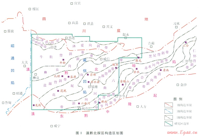 滇黔北探區(qū)地處三省交會的云南昭通、貴州畢節(jié)、四川宜賓和瀘州區(qū)域,大地構(gòu)造上屬于揚子地塊構(gòu)造域西南邊緣的滇黔北坳陷,主體為威信凹陷的中兩部區(qū)域(1),其北側(cè)為四川盆地(海相古生界構(gòu)造臺坳)