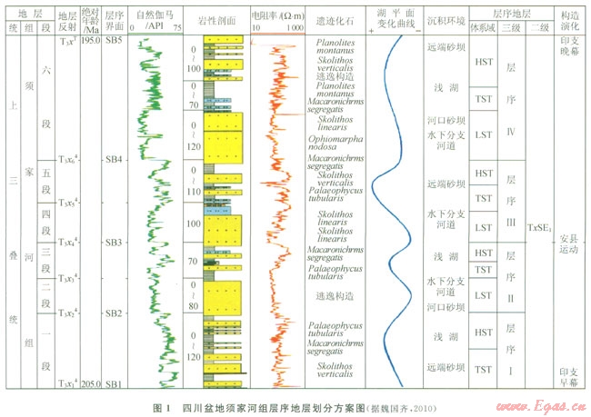四川盆地川中地區(qū)須家河組劃分為4個三級層序,每個層序可進一步識別出低位、水進和高位3個體系域,其中低位體系域以三角洲相為主,水進和高位體系域則以湖泊相為主,該區(qū)須二段總體上位于低位體系域[4](1)。
