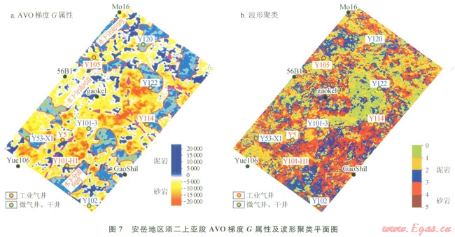 通過單井相的劃分和巖石物理分析,在等時地層格架內對安岳地區(qū)須二上亞段AVO梯度G和地震波形進行了提取和分析,精細刻畫了沉積微相及高孔砂巖的平面分布。