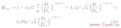 式中Rlam、Rturb分別為層流、紊流條件下的偏心效應(yīng)系數(shù),無(wú)因次;e為偏心度,無(wú)因次。