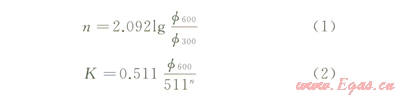 由于常規(guī)環(huán)空和小間隙環(huán)空中流體剪切狀態(tài)的不同,再用f300與f100的讀值進(jìn)行計(jì)算必定產(chǎn)生較大誤差。因此,對(duì)小間隙環(huán)空采用旋轉(zhuǎn)黏度計(jì)f600和f300的讀值進(jìn)行水泥漿流變參數(shù)n、K值(對(duì)冪律流體)的計(jì)算[4]。