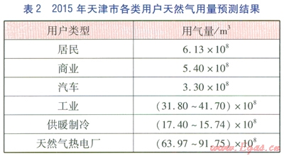 由表3可知,天津市的季節(jié)不均勻性主要體現(xiàn)為冬季用氣負(fù)荷較高,這是由于2015年規(guī)劃新建熱電廠絕大多數(shù)為天然氣熱電廠,不僅用于發(fā)電還用于冬季供暖,這就造成了冬季天然氣用氣負(fù)荷的增加,冬夏季用氣負(fù)荷差異明顯。