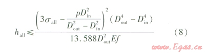 式(7)可作為當塌陷區(qū)地面出現(xiàn)沉降時,判定發(fā)生彎曲變形管段是否穩(wěn)定的判別式,也可作為計算塌陷區(qū)允許沉降量的計算式。
