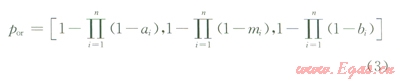 式中Pi是聚合后的模糊數(shù);Wj是第個(gè)j專家的權(quán)重因子;Pi,j是第j個(gè)專家為第i個(gè)基本事件分配的模糊數(shù);n為基本事件數(shù)目;m為專家個(gè)數(shù)。