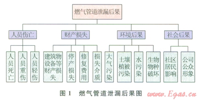 當(dāng)燃?xì)夤艿腊l(fā)生泄漏后,會(huì)給人員、財(cái)產(chǎn)、環(huán)境及社會(huì)帶來不同程度的影響。其后果就從人員、財(cái)產(chǎn)、環(huán)境及社會(huì)4方面來考慮,具體受影響因素參照圖l。