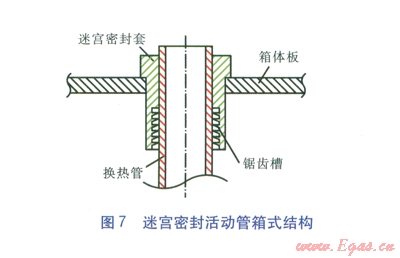 采用端面填料函密封的活動(dòng)管箱式結(jié)構(gòu)時(shí),一組管箱的制造安裝費(fèi)用為7.64×104元。采用迷宮密封活動(dòng)管箱式結(jié)構(gòu)時(shí),一組管箱的制造安裝費(fèi)用為13.52×104元。前者的使用壽命為l0l2個(gè)月,后者的使用壽命為6年以上。因此,在滿足使用壽命的前提下,采用迷宮密封活動(dòng)管箱式結(jié)構(gòu)的空氣預(yù)熱器的技術(shù)經(jīng)濟(jì)性可以接受。