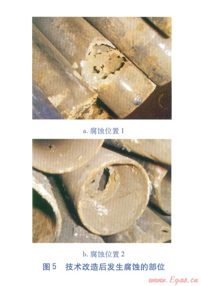 按單純改善換熱管材質(zhì)考慮,當(dāng)換熱管采用20號(hào)鋼時(shí),一組管箱(整體焊接的固定管箱式結(jié)構(gòu))的制造安裝費(fèi)用為2.85×104元。當(dāng)換熱管采用ND鋼時(shí),一組管箱(整體焊接的固定管箱式結(jié)構(gòu))的制造安裝費(fèi)用為6.96×104元。后者的制造安裝費(fèi)用為前者的2.44倍,但使用壽命并未明顯延長(zhǎng),最長(zhǎng)為510個(gè)月。