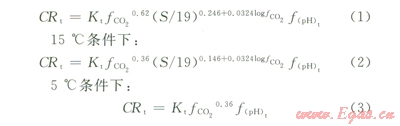 式中Kt為常數(shù),與溫度和腐蝕產(chǎn)物膜相關(guān);S為管壁切應(yīng)力,Pa;fCO2為CO2的逸度,bar;f(PH)t為pH值對腐蝕速率的影響因子。對于實(shí)際工況溫度下的腐蝕速率可通過在所測溫度及所規(guī)定溫度值問作線性插值得到。Norsok M506腐蝕模型是以實(shí)驗(yàn)數(shù)據(jù)為基礎(chǔ)而建立的,對于腐蝕過程中化學(xué)及電化學(xué)反應(yīng)的熱力學(xué)及動(dòng)力學(xué)等機(jī)理考慮過少,可以用于預(yù)測材料的均勻腐蝕速率。