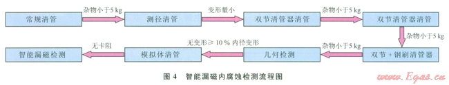 靖邊氣田采用高清晰智能漏磁檢測(cè)技術(shù)對(duì)3號(hào)干線進(jìn)行了不停輸內(nèi)腐蝕檢測(cè)。具體施工流程如圖4所示。