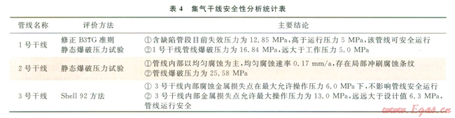 近年來(lái),靖邊氣田主要對(duì)1號(hào)、2號(hào)、3號(hào)干線等集氣干線進(jìn)行了安全性分析,分析結(jié)果見(jiàn)表4