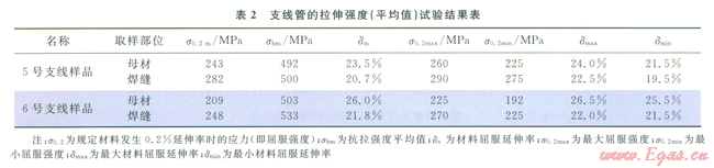 從試驗(yàn)結(jié)果看出,母材的屈服極限明顯的低于焊縫,特別是6號(hào)支線的母材最小屈服極限(192MPa)已低于有關(guān)規(guī)定的最小值。