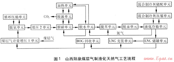 山西陽泉煤層氣制液化天然氣工藝流程見圖1。