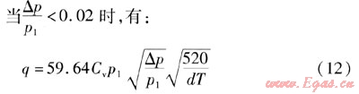 C是由生產(chǎn)廠家提出的調壓器的流通能力系數(shù),其物理意義為:在介質密度ρ為1000kg/m3、壓差△p=0.0981MPa、調壓器全開的條件下,通過調壓器的流量,單位是m3/h。用戶根據(jù)需要的壓差和氣體的密度就可以用式(2)算出調壓器全開時的流量。