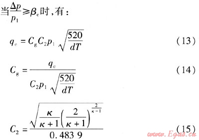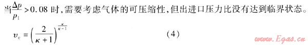 時,為亞臨界狀態(tài),必須考慮氣體的可壓縮性,否則引起較大誤差。為此需要考慮氣體密度的變化,引出氣體密度的膨脹系數(shù),此時常用的公式為: