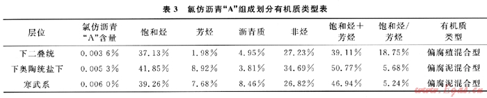 研究區(qū)氯仿瀝青“A”組成特征見(jiàn)表3。從表3中可見(jiàn),