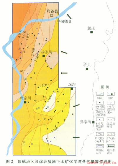 鄂爾多斯盆地東北緣保德地區(qū)是我國第一個投入開發(fā)的中低煤階煤層氣區(qū)。該區(qū)發(fā)育厚煤層,含氣量低  中等,具有解吸壓力高、含氣飽和度高的特點[1],對其水動力分布規(guī)律及其控氣作用還需要進(jìn)一步認(rèn)識。為此,筆者采集了大量煤層氣井產(chǎn)出水樣品,對其化學(xué)特征及變化規(guī)律進(jìn)行分析,以揭示地下水的動力環(huán)境及其控氣作用,為該區(qū)的煤層氣勘探開發(fā)提供依據(jù)。