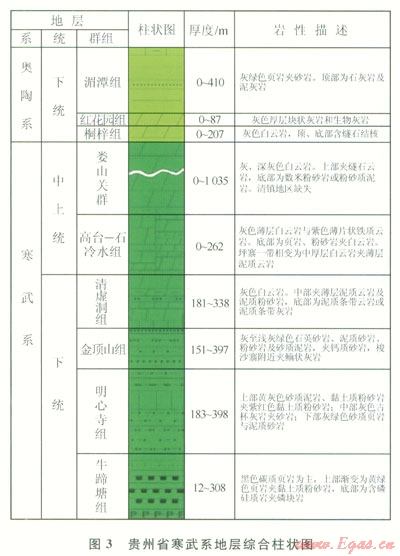 1)貴州省下寒武統(tǒng)牛蹄塘組主要分布于黔北、黔中及黔東 黔東南地區(qū),頁巖層段位于牛蹄塘組下部,巖性主要為含粉砂一粉砂質(zhì)、碳質(zhì)泥巖頁巖。