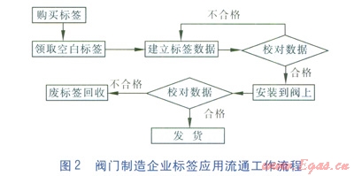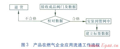 標簽在閥門制造企業(yè)實現(xiàn)應(yīng)用流通的工作流程和產(chǎn)品在燃氣企業(yè)應(yīng)用流通的工作流程見圖2、3