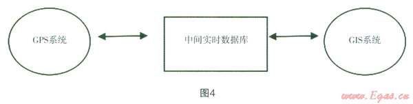 車載GPS終端接收GPS信號(hào)以后,通過(guò)移動(dòng)GPRS網(wǎng)絡(luò)將應(yīng)急搶修車輛的地理信息實(shí)時(shí)發(fā)送至調(diào)度指揮中心,通過(guò)GPS系統(tǒng)與GIS系統(tǒng)的中間數(shù)據(jù)庫(kù),GIS系統(tǒng)實(shí)時(shí)讀取車輛的地理位置,并將其顯示在電子地圖上。(見(jiàn)圖4)