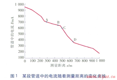 在圖1中,電流衰減速率比較快(曲線斜率比較大)的地方,如CD段,可以認(rèn)為該處的防腐層的質(zhì)量相對較差。而在曲線斜率相對較小的地方,如AB段,防腐層的質(zhì)量可能需要用PCM自帶的ACVG或其他方法進行更進一步的檢測和確認(rèn)。