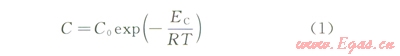 式中C為氣體的滲透系數(shù),(cm3·cm)(cm2·s·Pa)C0為前端因子;Ec表示滲透活化能;R為摩爾氣體常數(shù),8.31×10-3kJ(mol·K)