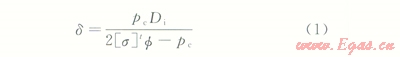 4)高壓罐體壁厚的確定,應用高壓容器中徑計算公式: