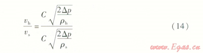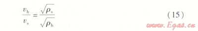 可見,流速的變化只與燃氣密度有關。