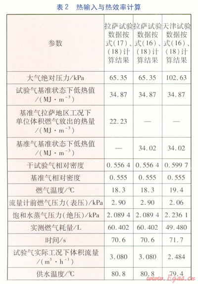 某品牌燃氣采暖熱水爐,型號為L1PB24,平原地區(qū)設計采暖額定熱輸入24kW、采暖額定熱輸出22kW。拉薩地區(qū)設計采暖額定熱輸入19.5kW、采暖額定熱輸出18kW。分別按式(16)及式(17)計算熱流量(熱輸入),按式(18)計算熱效率,熱輸出為熱效率乘以熱輸入。具體計算數據見表2。