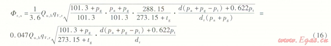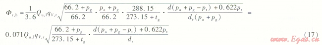 式中Fr,s——燃氣采暖熱水爐實測熱流量折算到海平面地區(qū)標準狀態(tài)下的熱流量,海平面地區(qū)標準狀態(tài)下的熱流量,Kw