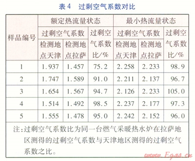 ③燃氣采暖熱水爐的煙氣中CO含量:由于拉薩地區(qū)空氣稀薄,氧的絕對含量相比于海平面地區(qū)要低,從而導致燃燒不夠充分,拉薩地區(qū)測得的煙氣中CO含量比海平面地區(qū)偏高。