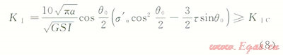 將式(7)確定的開(kāi)裂角(q0)代入式(6),求出拉剪作用下的裂紋起裂應(yīng)力強(qiáng)度因子為: