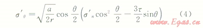 當(dāng)s¢n<0時(shí),裂縫面法向應(yīng)力為拉應(yīng)力狀態(tài),產(chǎn)生法向位移、裂開(kāi),滑動(dòng)抗剪摩擦力忽略不計(jì),裂縫端部擴(kuò)展裂紋(r,q)處的s¢q可表示為: